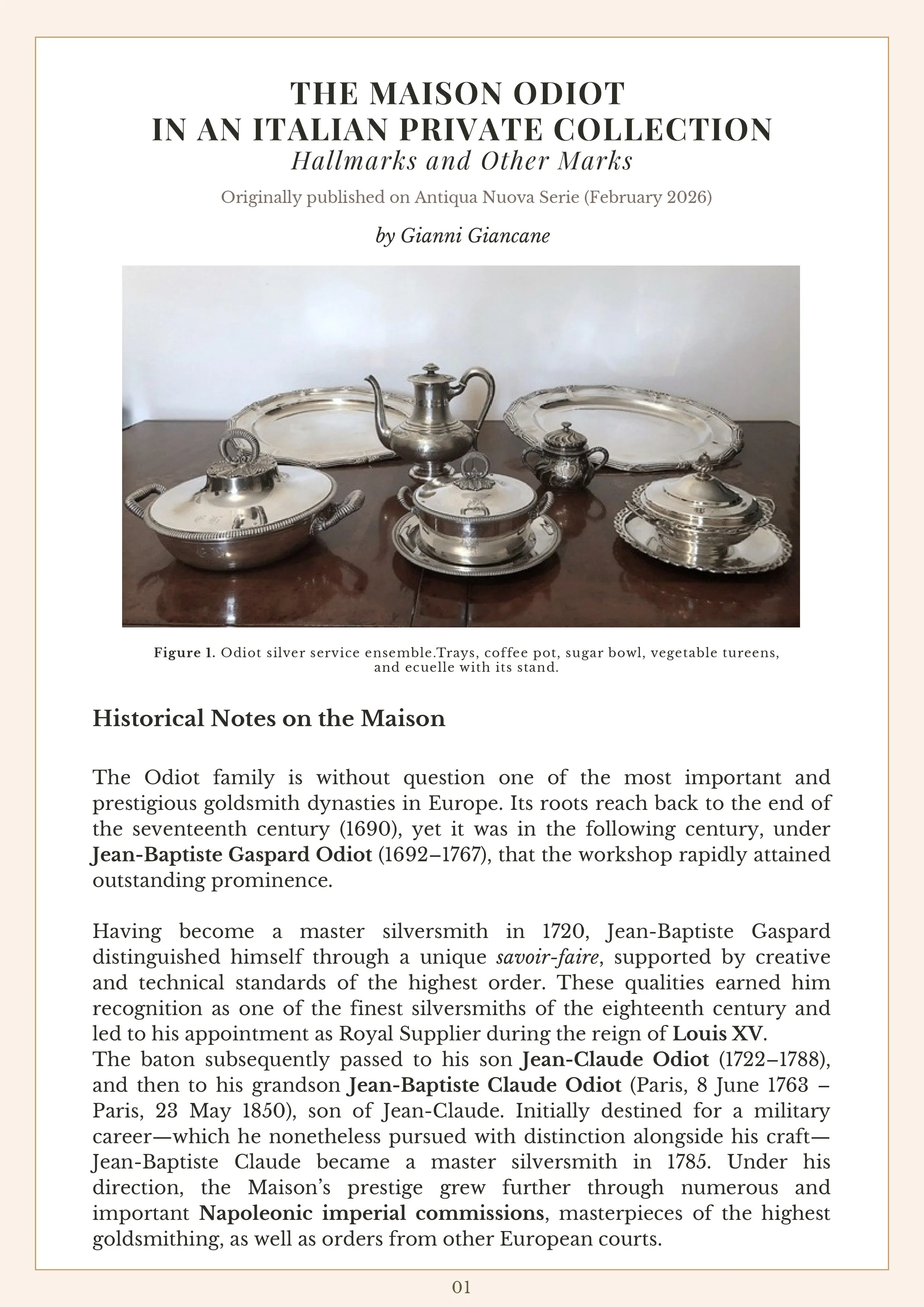 Originally published on Antiqua Nuova Serie in February 2026, this article by Gianni Giancane explores the history, hallmarking, and stylistic evolution of Odiot silver through a remarkable group of 19th-century pieces from an Italian private collection.