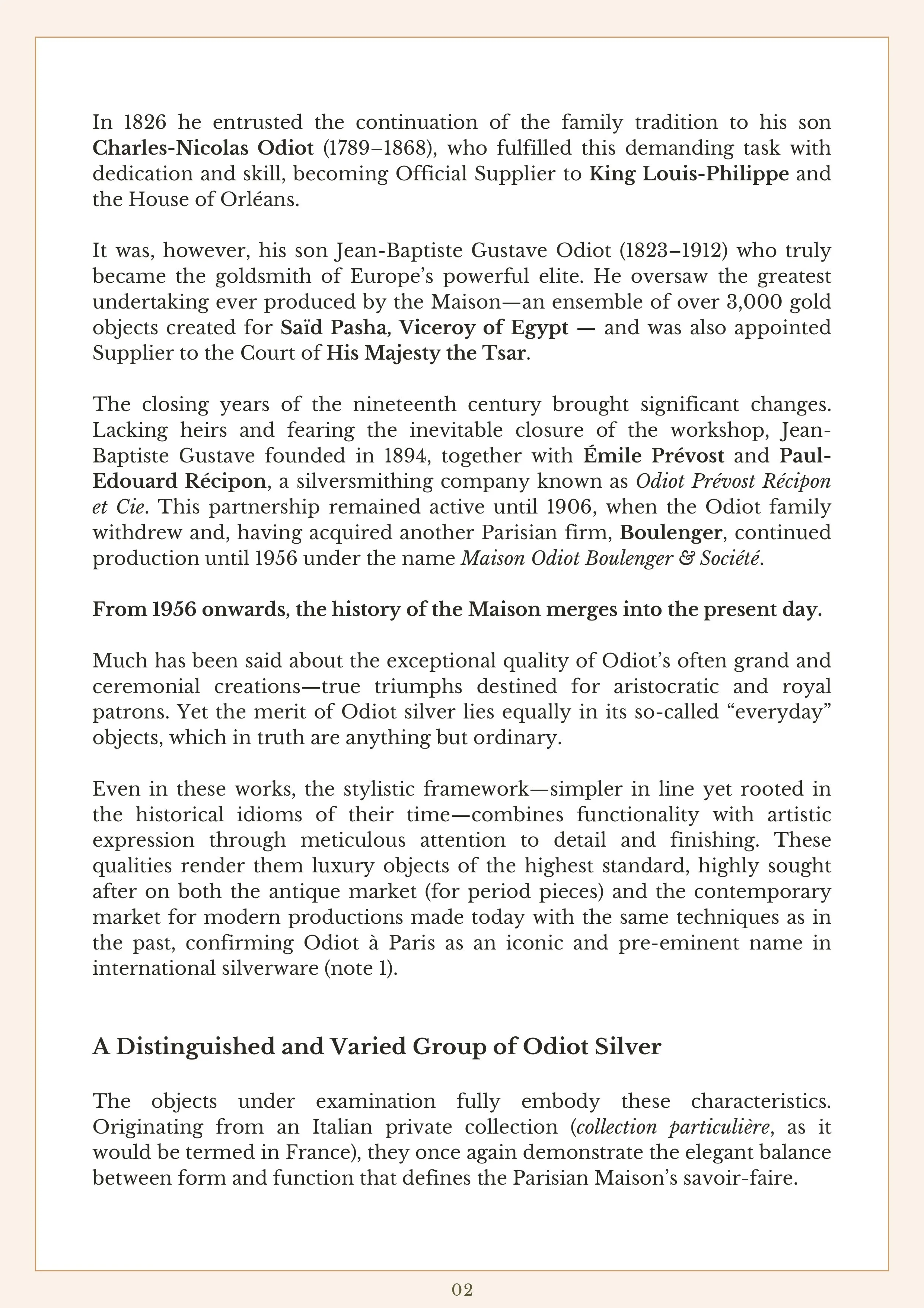 Combining historical research with close visual and technical observation, the article offers valuable insight into the refinement, functionality, and enduring prestige of Odiot silver in the 19th century.